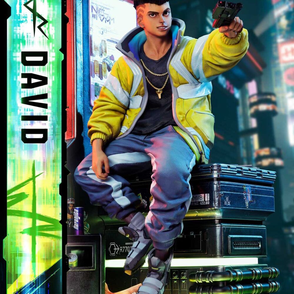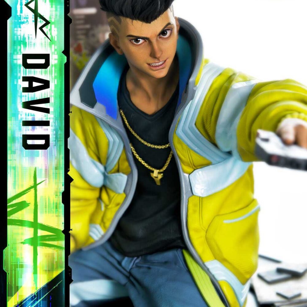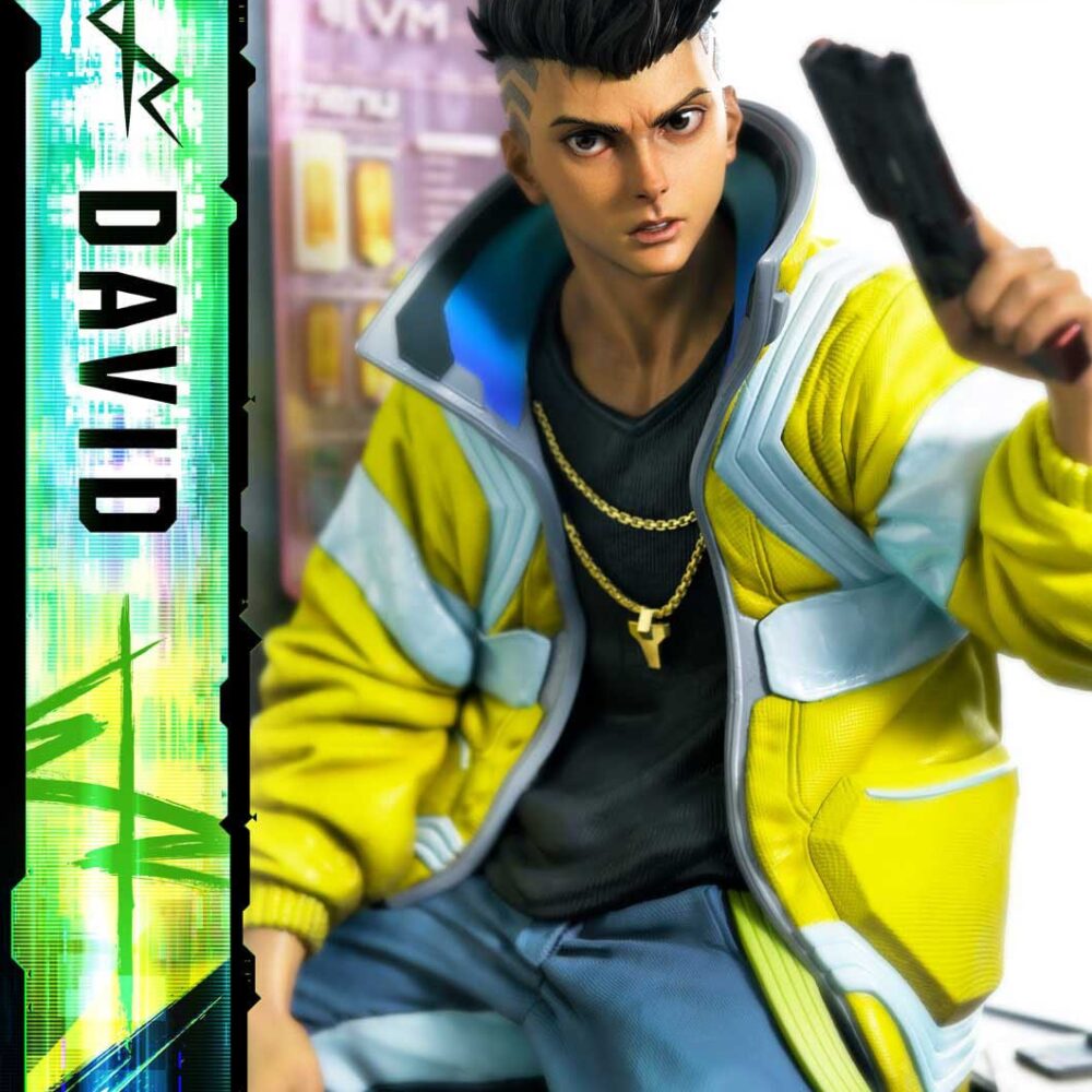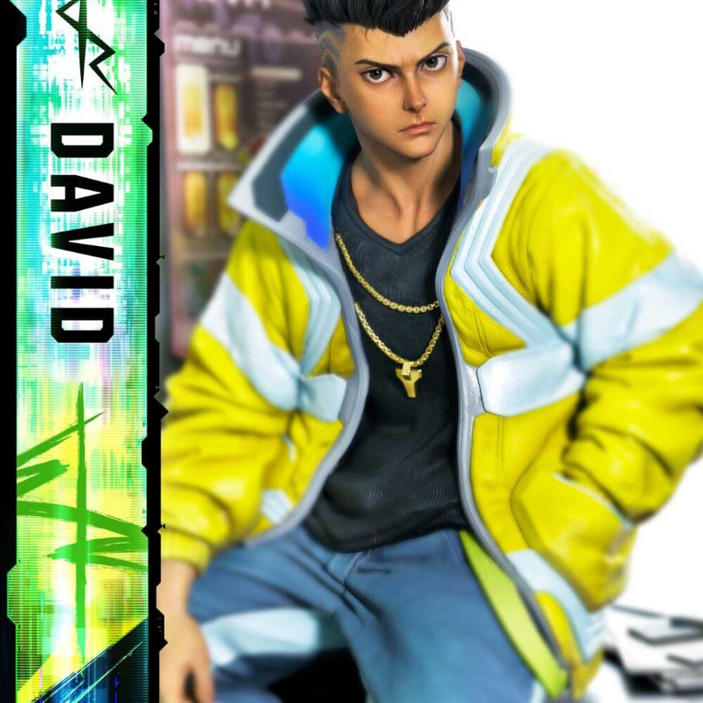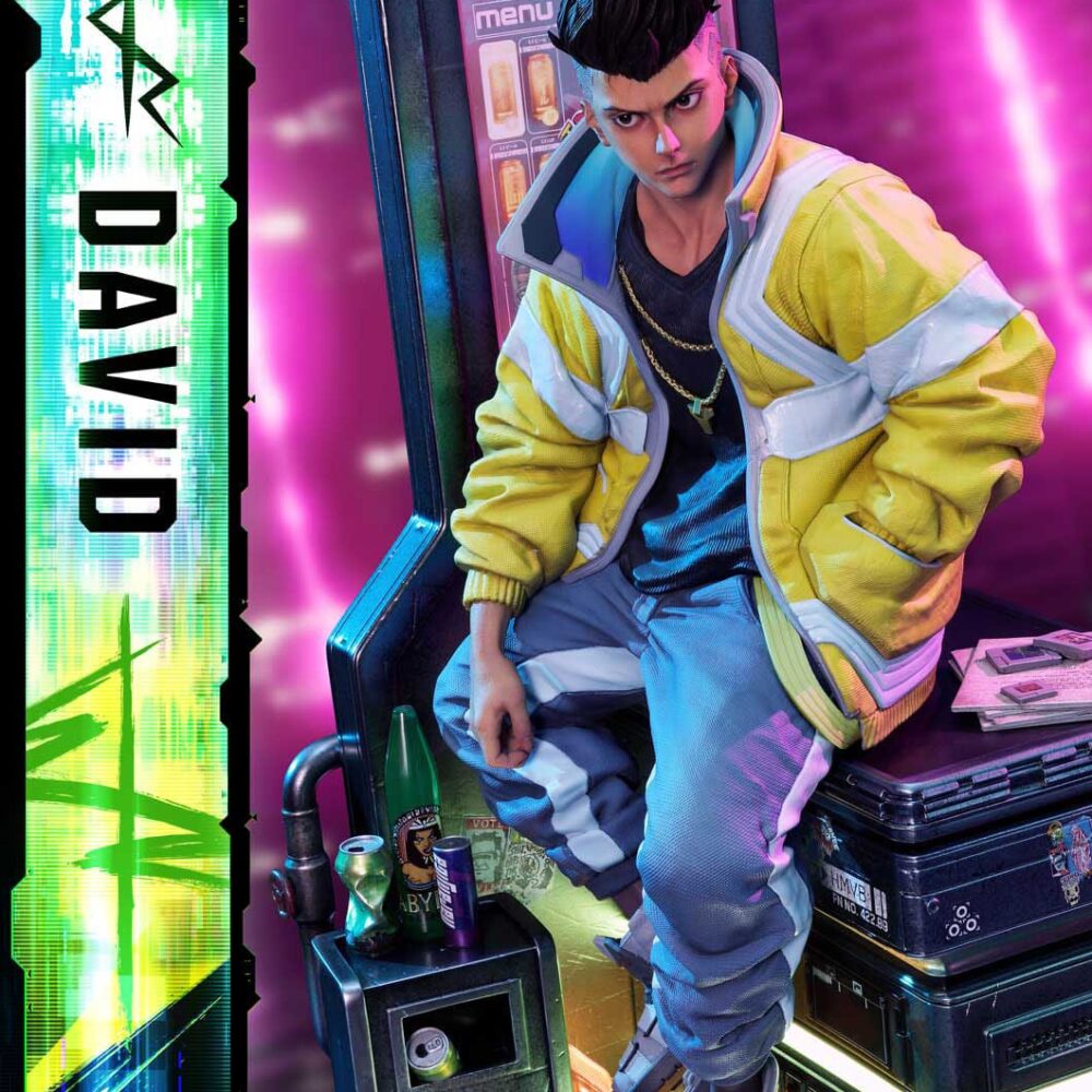 As CD PROJEKT RED Producer Saya Elder highlighted during Prime 1 Studio’s Next Level Showcase XIII, the sculpt and paintwork faithfully reflect the world of “Cyberpunk: Edgerunners”, down to the finest details. The clean line art of David’s side-shaved hairstyle, his expression of ambition and innocence, and his mother’s iconic yellow jacket all incorporate elements of the anime’s design while introducing new layers of appeal.