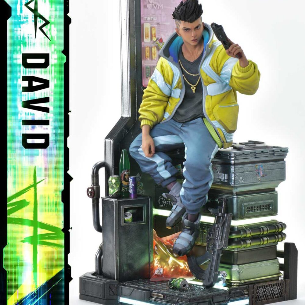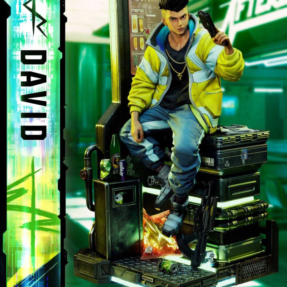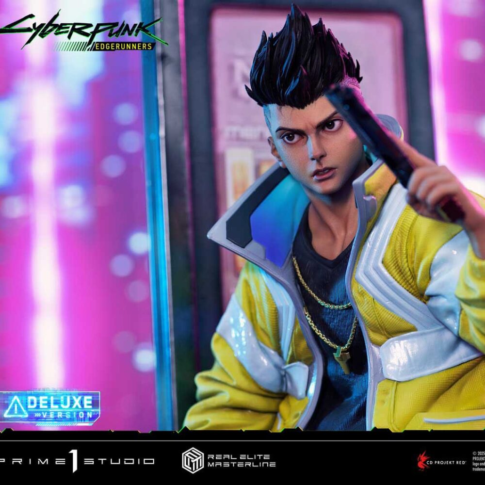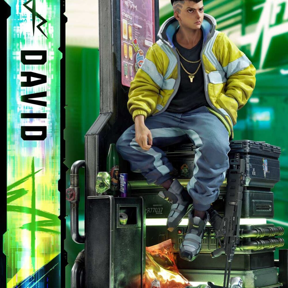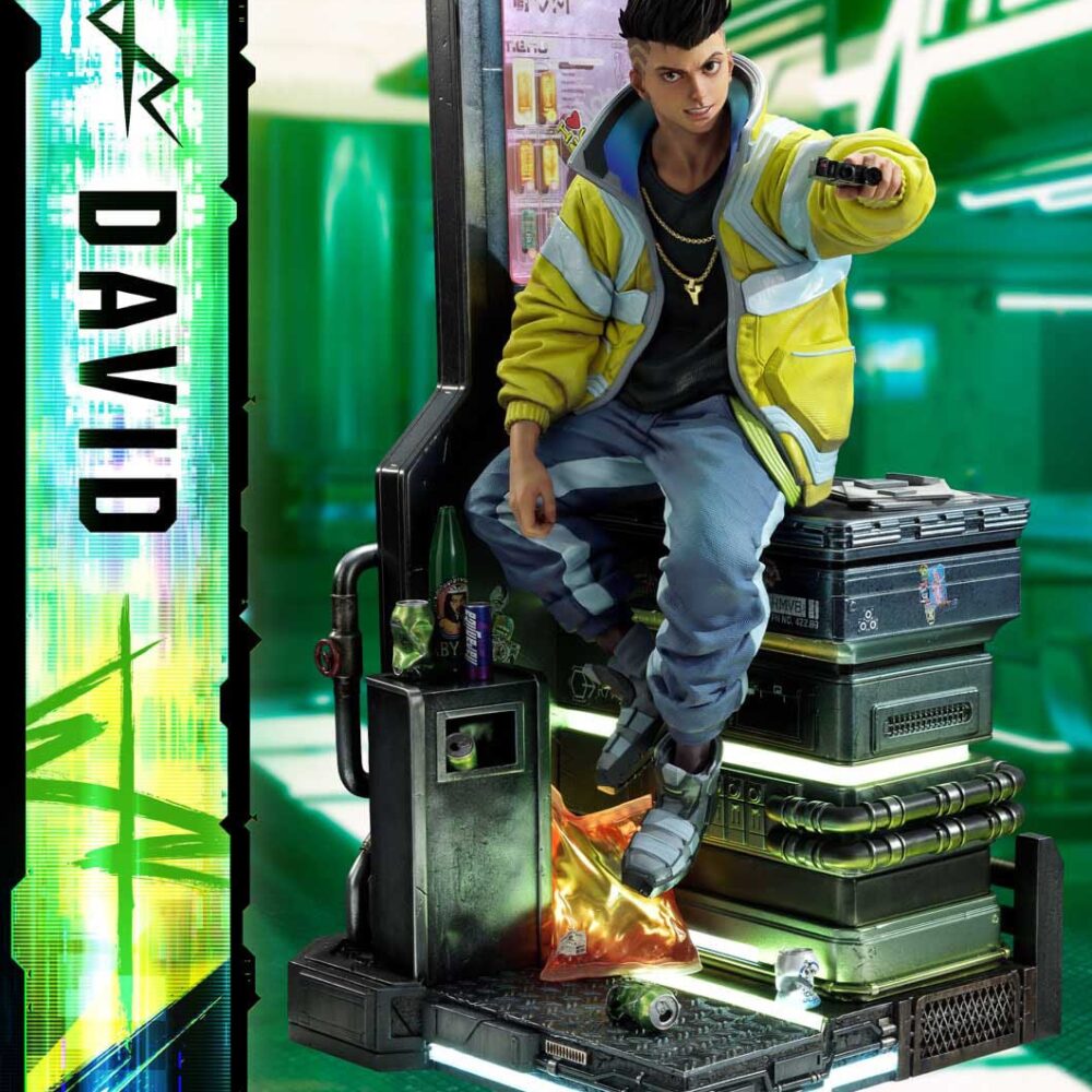 As CD PROJEKT RED Producer Saya Elder highlighted during Prime 1 Studio’s Next Level Showcase XIII, the sculpt and paintwork faithfully reflect the world of “Cyberpunk: Edgerunners”, down to the finest details. The clean line art of David’s side-shaved hairstyle, his expression of ambition and innocence, and his mother’s iconic yellow jacket all incorporate elements of the anime’s design while introducing new layers of appeal.