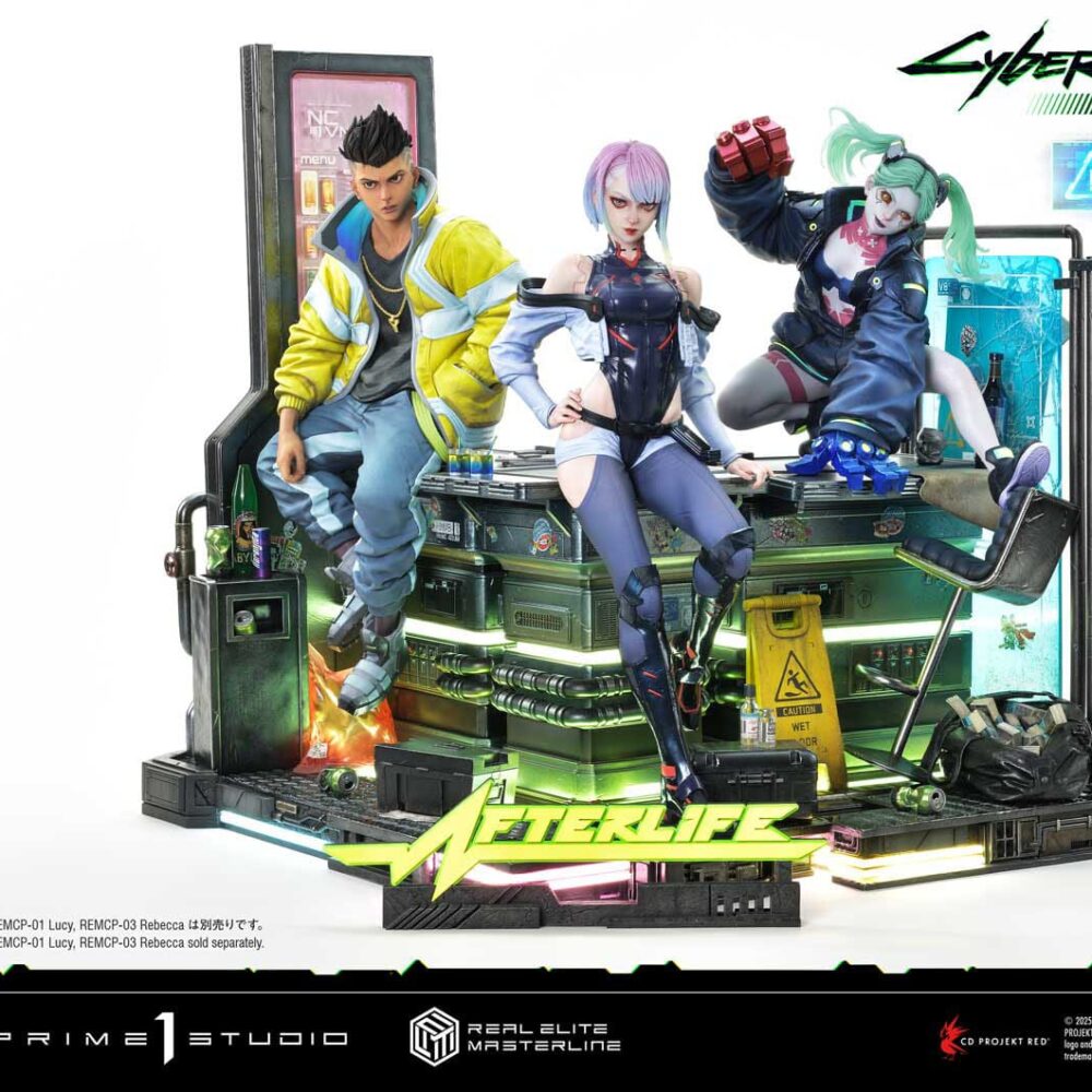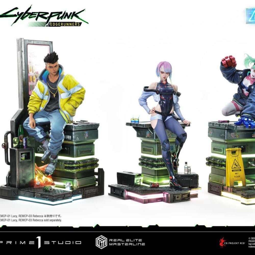 What if David and the rest of his crew were recreated in the CG style of “Cyberpunk 2077”? This bold concept has been brought to life as a high-precision statue. The figure captures David’s defiant stance as he climbs the ranks of Night City’s underworld, creating a harmonic combination of the game’s realism with his original anime design.
