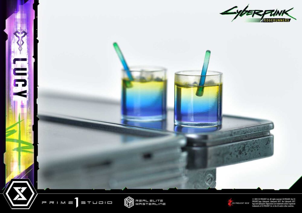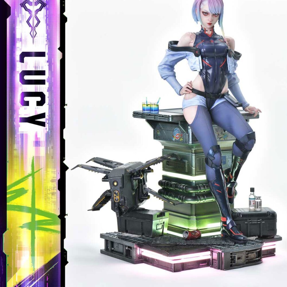What if Lucy and the rest of David’s crew were recreated in the CG style of “Cyberpunk 2077”? This visionary concept has been brought to life as a high-precision 1/4 scale statue. Lucy leans confidently against the bar counter, faithfully capturing her presence in the anime while blending seamlessly with the game’s realistic aesthetic.