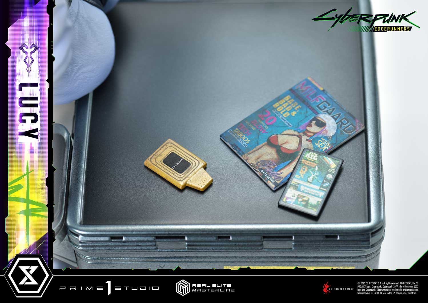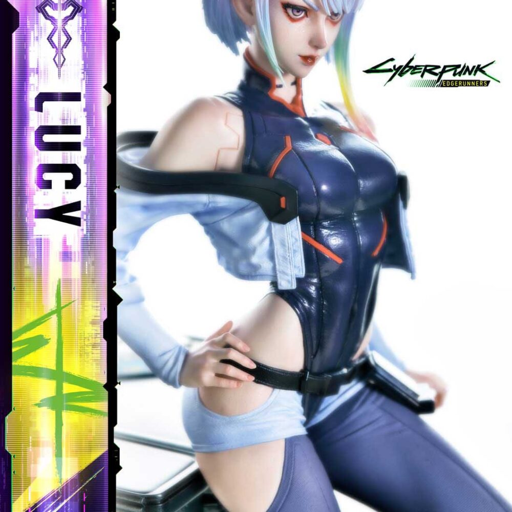 “In her backstory, Lucy is half-Polish and half-Japanese. With this realistic approach, her mixed heritage is beautifully reflected in her facial features. Seeing that detail captured so well makes me happy,” said CD PROJEKT RED Producer Saya Elder during the Prime 1 Studio Next Level Online Showcase XIII, pointing out how the sculpt and paintwork meticulously bring Lucy to life. The asymmetrical bob’s vivid colors, the subtle blush on her skin, and the varied textures of her outfit-every element encapsulates both her essence and adds a new layer of depth.
