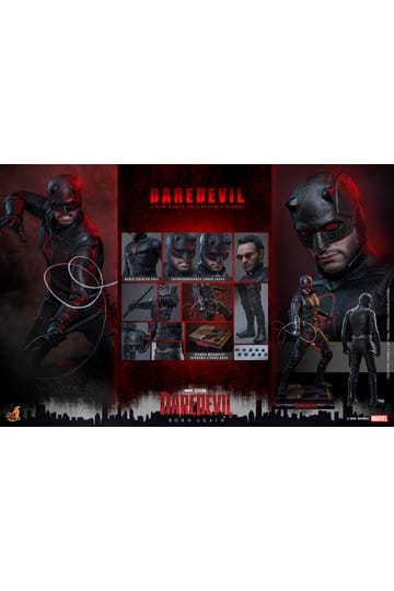 To celebrate the return of the Man Without Fear in Daredevil: Born Again Season 2, Hot Toys is thrilled to announce the 1/6th scale Daredevil Collectible Figure! Masterfully crafted based on the likeness of Charlie Cox, the figure features a Matt Murdock head sculpt and a Daredevil cowled head. The cowled head features interchangeable parts, including two lower face plates and two cowls showcasing varying levels of weathering effects.