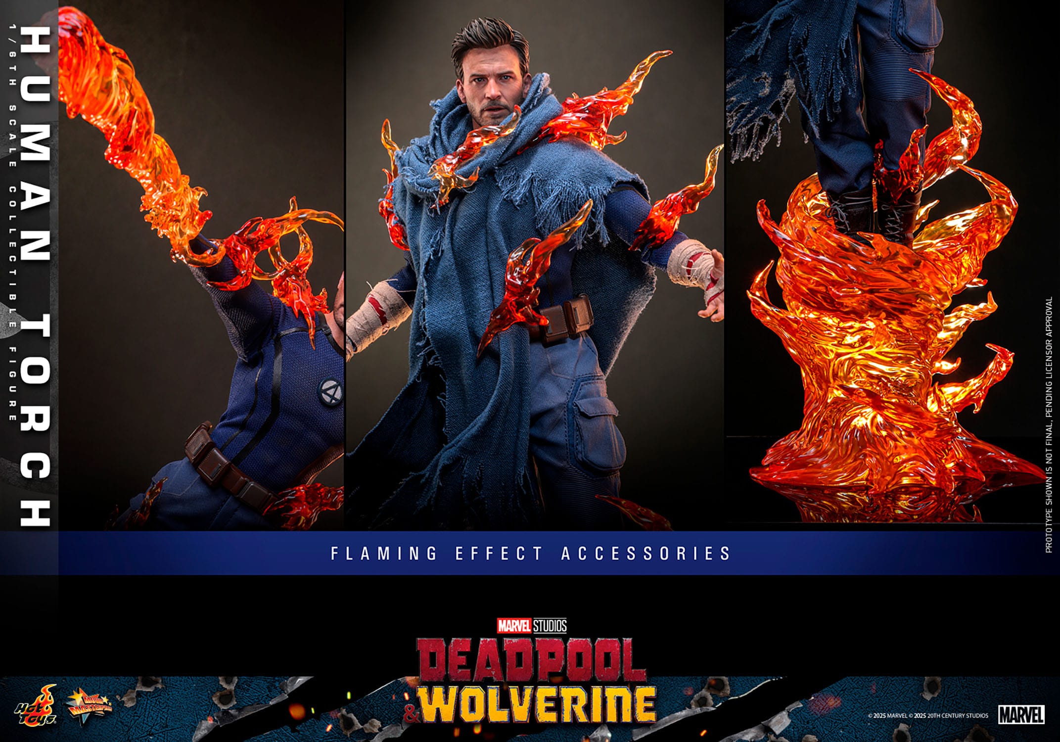 The Deadpool & Wolverine Movie Masterpiece 1/6 Human Torch 31 cm is a premium collectible featuring a highly detailed costume, realistic flame effects, and full articulation. Perfect for Marvel fans and collectors.