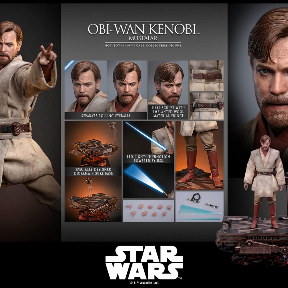 Recreate the epic showdown on Mustafar with the Obi-Wan Kenobi (Mustafar) 1/6 Scale Movie Masterpiece Collectible Figure by Hot Toys. Based on his appearance in Star Wars: Episode III – Revenge of the Sith, this figure captures Obi-Wan Kenobi during the climactic duel against Anakin Skywalker.