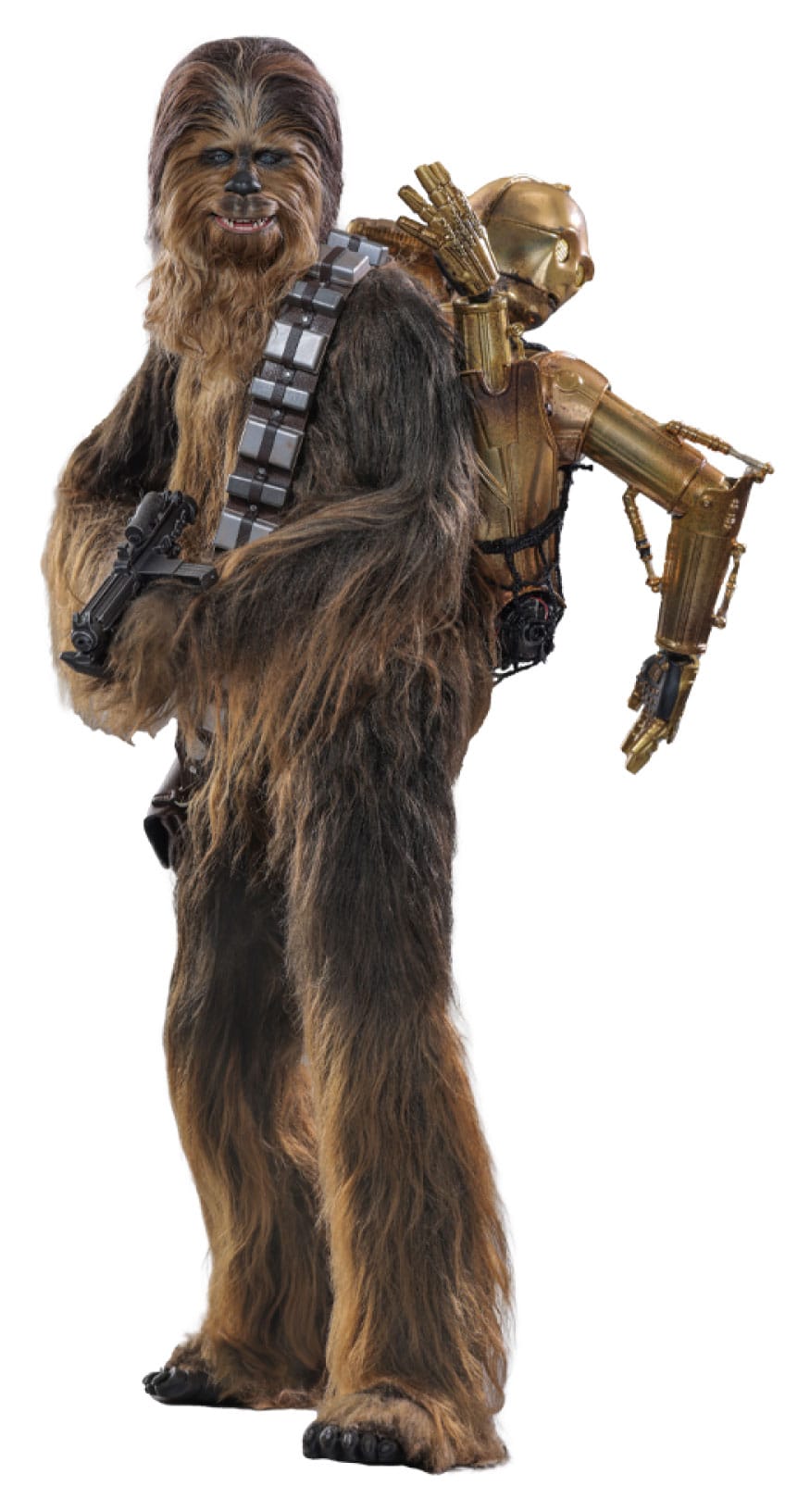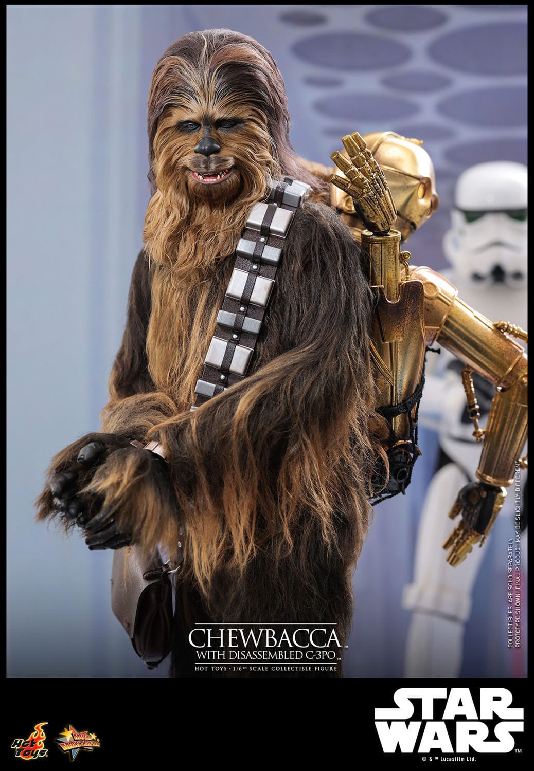 Every aspect is designed to replicate Chewbacca’s on-screen appearance, while the included disassembled C-3PO adds storytelling possibilities for display setups.